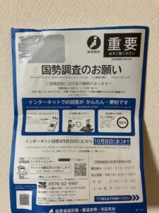 ところで皆様、国勢調査の封書はお手元に届きましたでしょうか?