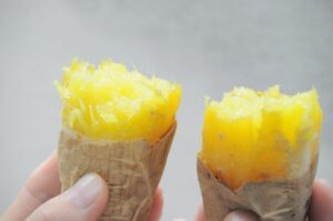 案の定、会場に入るとたくさんのお店があり、思わず買って食べたくなるものばかりでしたが、普段白砂糖を控えたり油の質に気を付けているので極力ヘルシーなモノ=焼き芋をメインに楽しみました😊