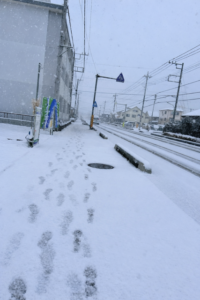雪となれば電車通勤一択で、今日は雪道を歩いて駅まで行きました。